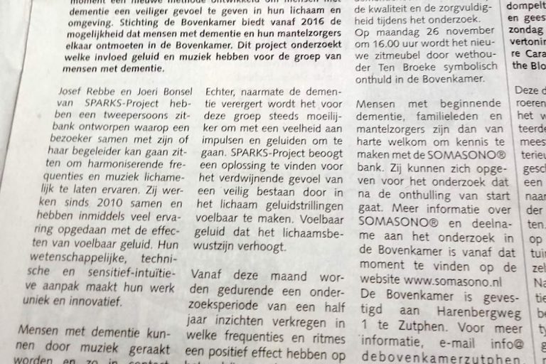 Zutphen – In the Bovenkamer in Zutphen, a new treatment is currently being developed for people with dementia…