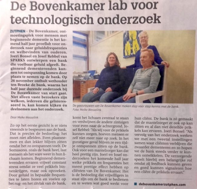 Zutphen – De Bovenkamer, meeting place for people with incipient dementia, spending the next six months as a trial lab for research into sound frequencies…